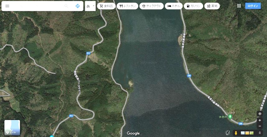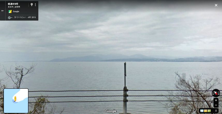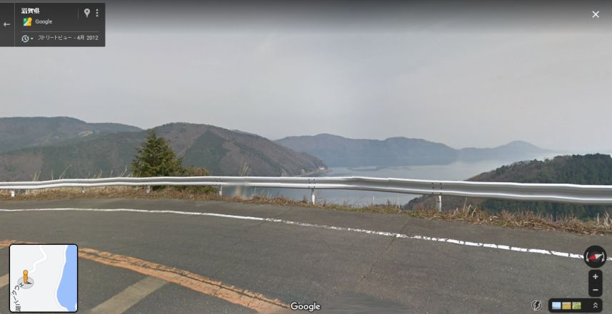 | グーグルの空中写真。旧道は「奥琵琶湖パークウェイ」として整備された。 ↓ |