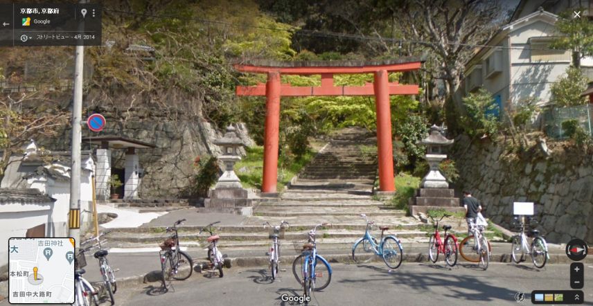 | 「京都市左京区吉田神楽岡町」の吉田神社の南参道の鳥居前。 ↓ |