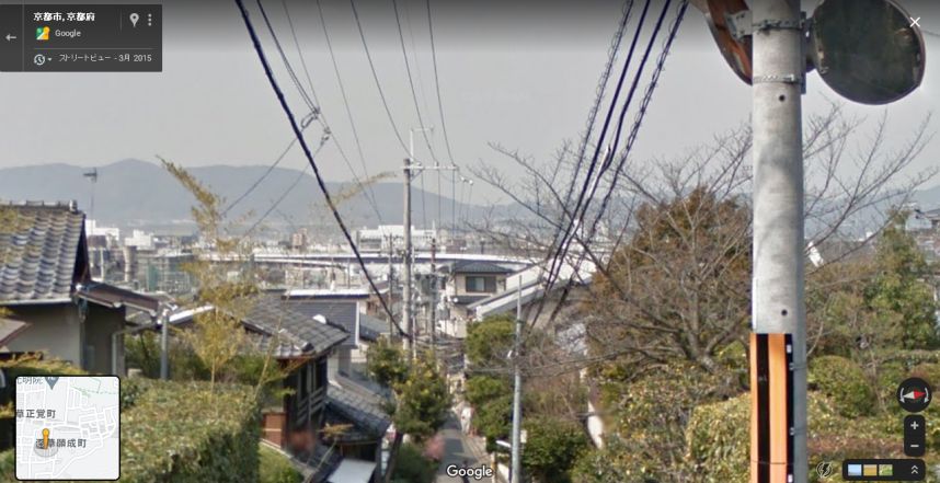 | 現地のやや南から取得したグーグル・ストリートビューの画像。遠景の山並みも矛盾しない。 ↓ |