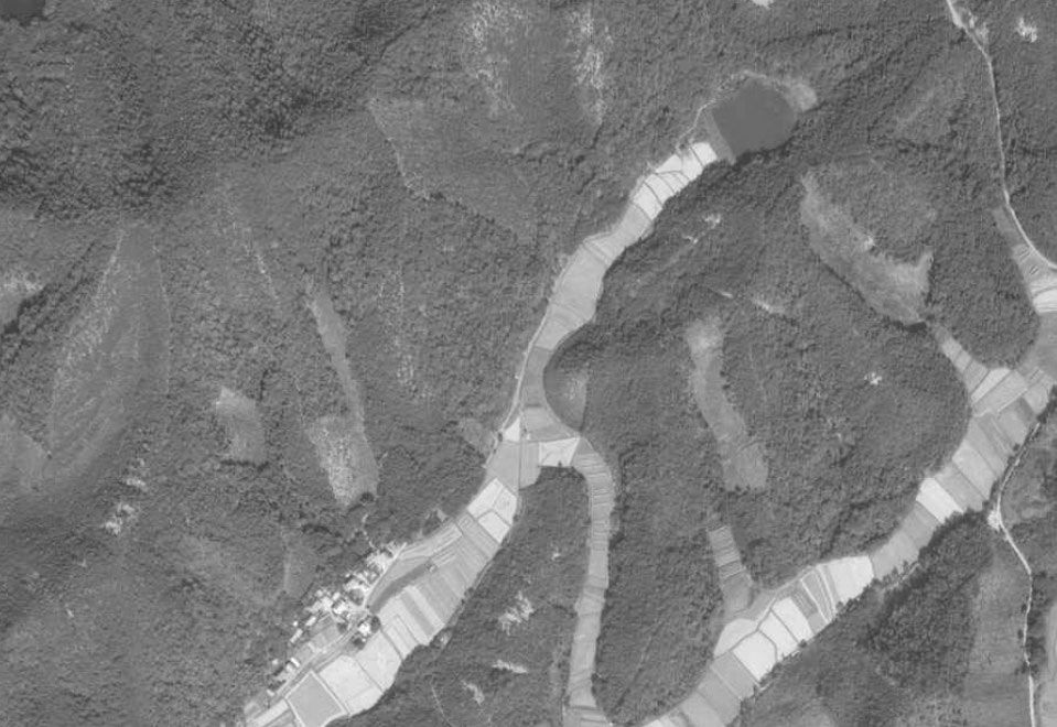 | 国土地理院の「国土変遷アーカイブ」による現地周辺の1982年撮影の航空写真。中央あたりがロケ地かと思われる。 ↓ |