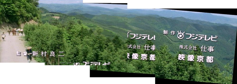 | 「水戸黄門(第15部)」の「第2話 助格駕籠屋と客引き老公」と同じ場所。カメラも動いているので、画像の境界がスムーズに繋げなかった。 ↓ |