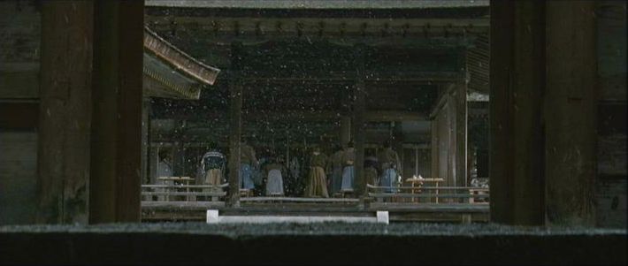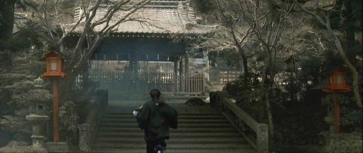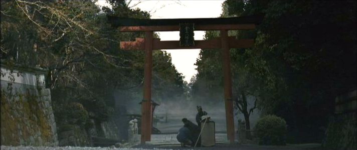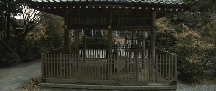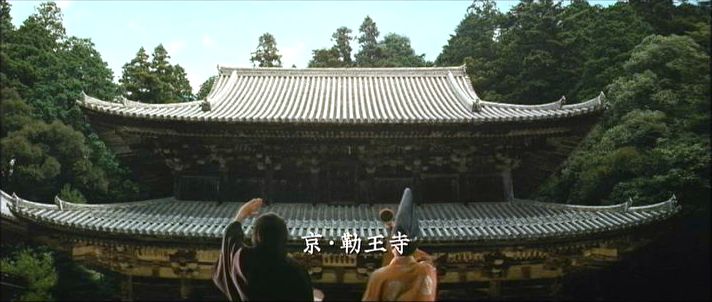 | 「滋賀県大津市園城寺町」の園城寺(三井寺)の村雲橋。ただし鳥居と背景はCGらしい。(撮影協力クレジットあり) ↓ |