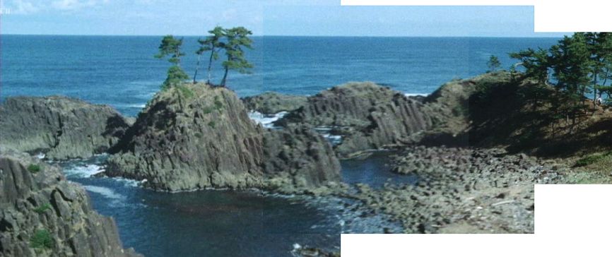 | 「京丹後市丹後町間人」の城島の岩場だと思う。(切り貼り合成画像) ↓ |