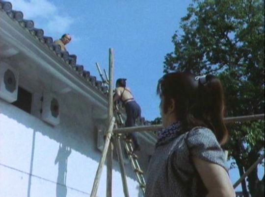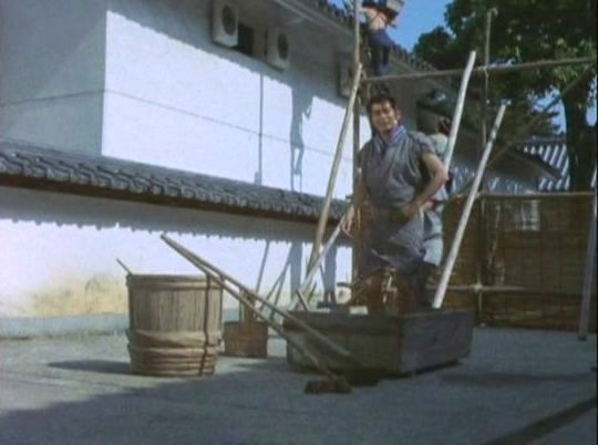 「風流太平記『密命』」のシーン。「江戸の用心棒」は塀の向こうからこちらを見ている。