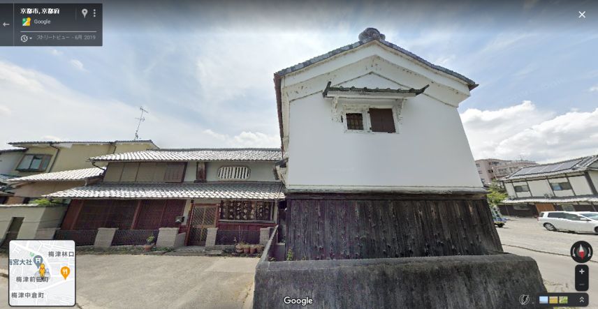 | 「京都市右京区梅津フケノ川町」の梅宮大社の南の土蔵だと思う。 ↓ |