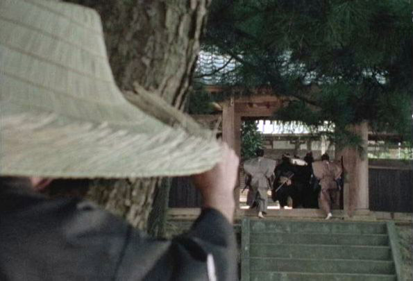 山門を参道から一段高い南の道から見ている。この外、山門出入りシーンあり。