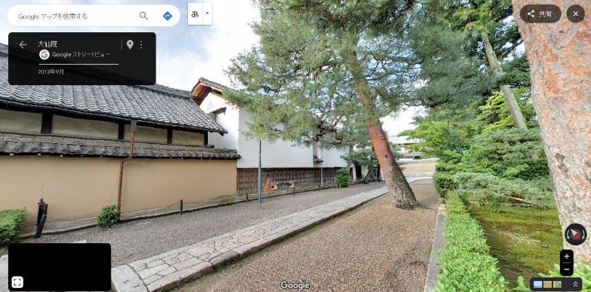 | 大仙院の南から取得したグーグルのストリートビューの画像。 ↓ |