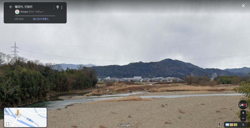 京都府亀岡市の桂川の宇津根橋あたりの土手か河原。