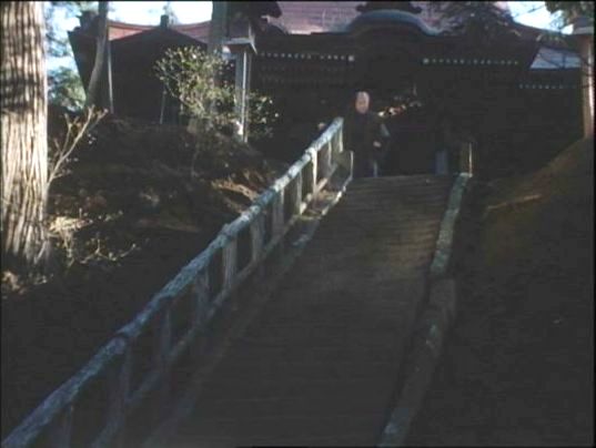 | 観音堂前の石段。当時、観音堂の屋根は赤かった。 ↓ |
