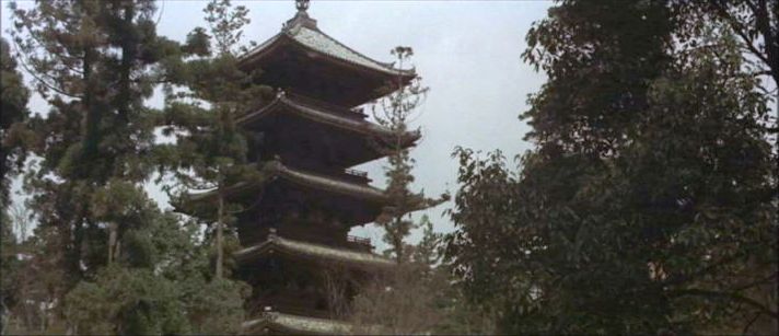 | 仁和寺の五重塔。九所明神がチラリ。 ↓ |