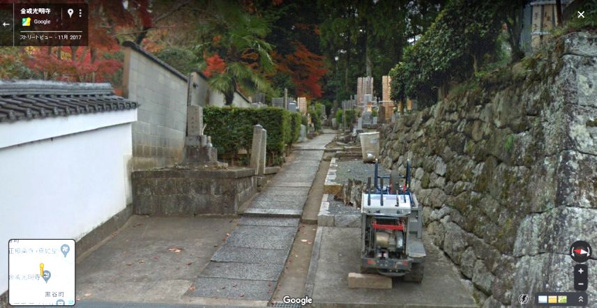 グーグル・ストリートビューの画像。土塀の様子。左手に新しい塀ができている。