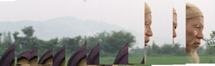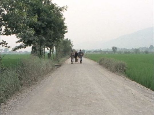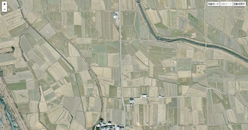 | 国土地理院の「国土変遷アーカイブ」による現地周辺の1974年撮影の航空写真。南北に伸びる道がロケ地。道の西沿いに黒い筋のように見えるのが本編の木立ちかと思われる。 ↓ |