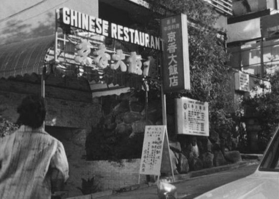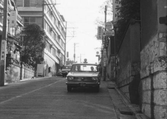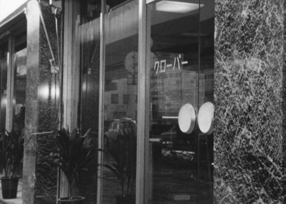 | クローバー喫茶室の前。奥のビルの看板が「ミランダカメラ」と読めるが、同社の営業所は六本木にあったので、たぶんそれであろう。 ↓ |