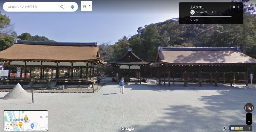 「京都市北区上賀茂本山」の上賀茂神社の細殿(ほそどの)、橋殿(はしどの)、土屋(つちのや)。