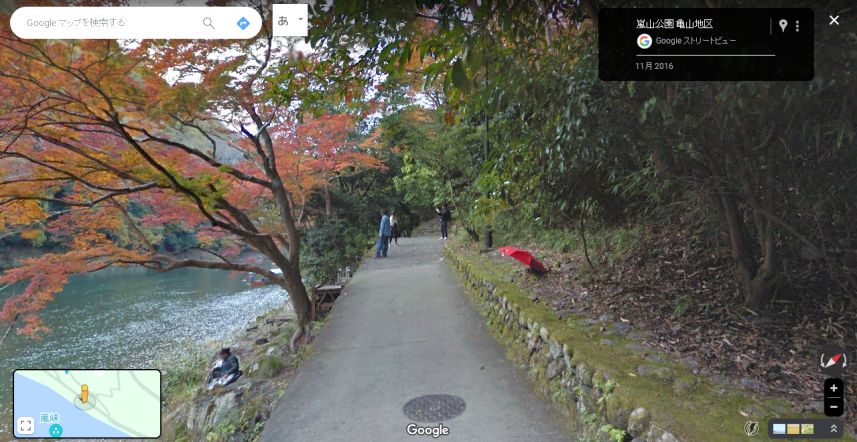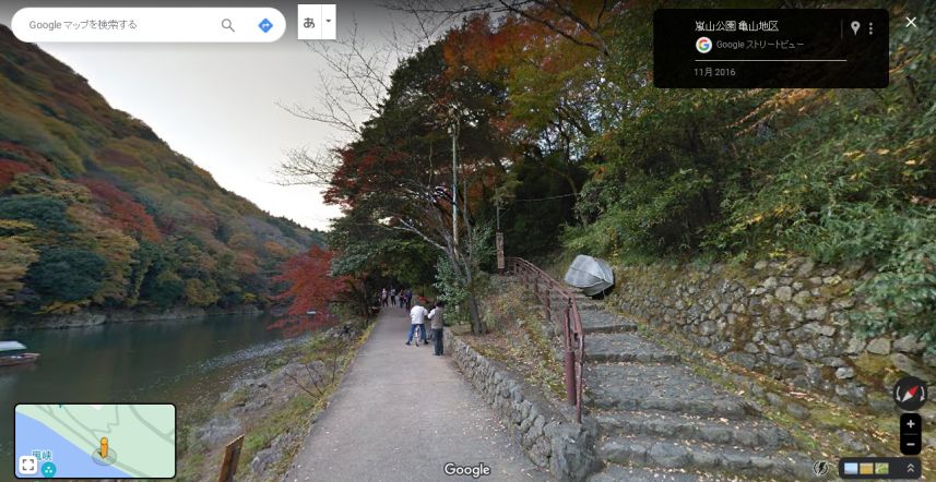 | 嵐山の祐斎亭そばの嵐峡左岸。 ↓ |
