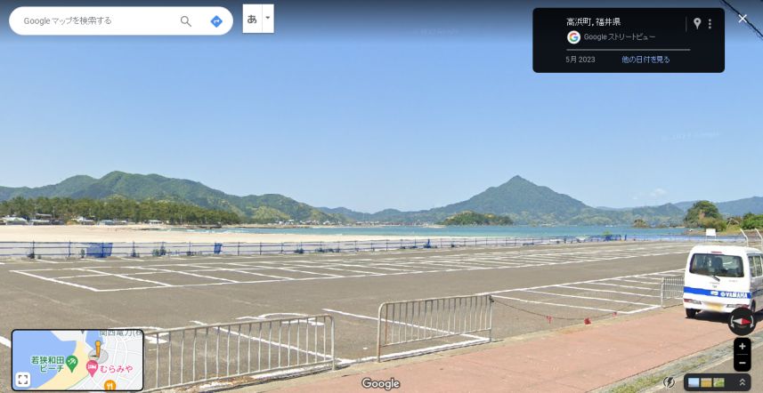 | 「高浜町薗部(そのべ)」の白浜海水浴場から北西を見ていると思う。 ↓ |