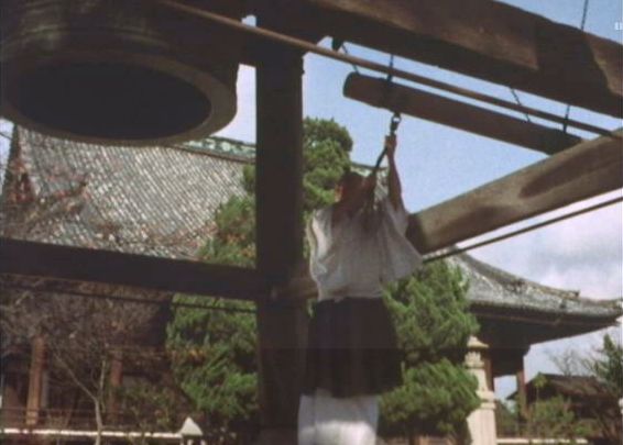 鐘楼から本堂を見る。