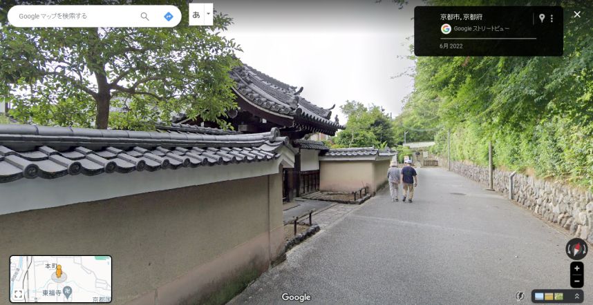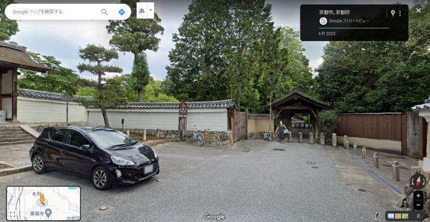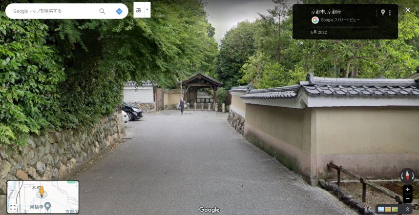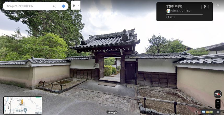 | 一華院の南東にある「月下門」の前。奥に見える屋根は東福寺の経蔵。 ↓ |