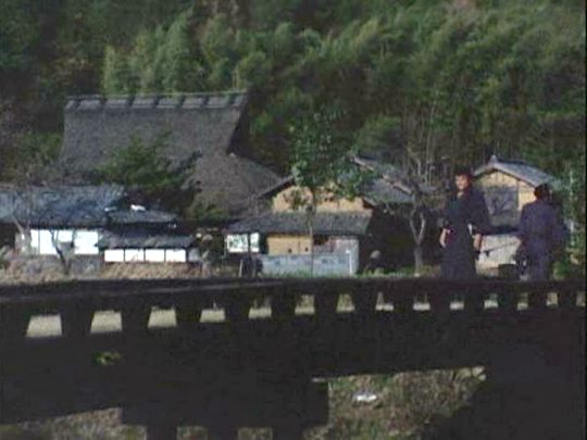 「木枯し紋次郎」のシーン。上の絵よりカメラは遠い位置にある。