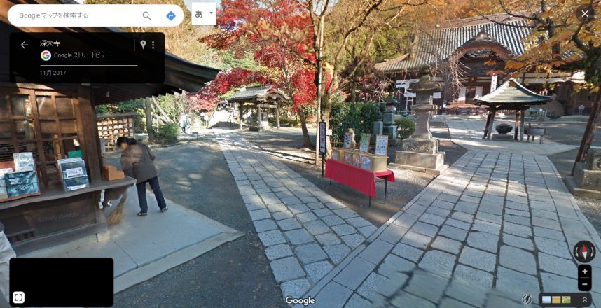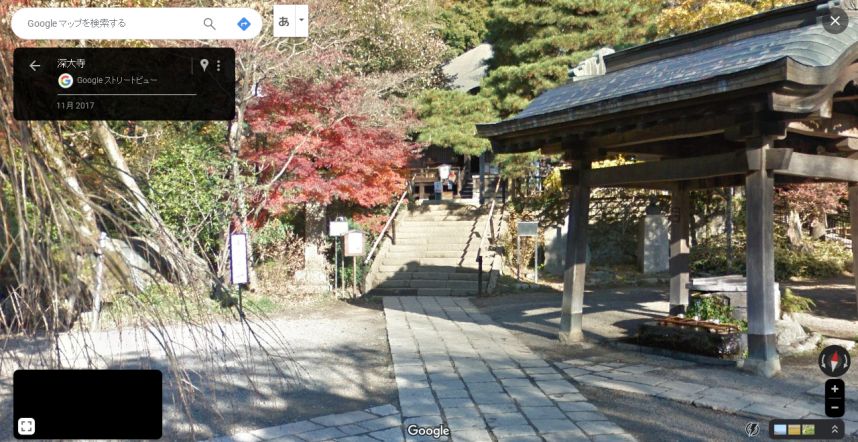 | 元三大師堂前のグーグルのストリートビューの画像。回向柱(?)と、石灯篭の痕跡が見える。 ↓ |