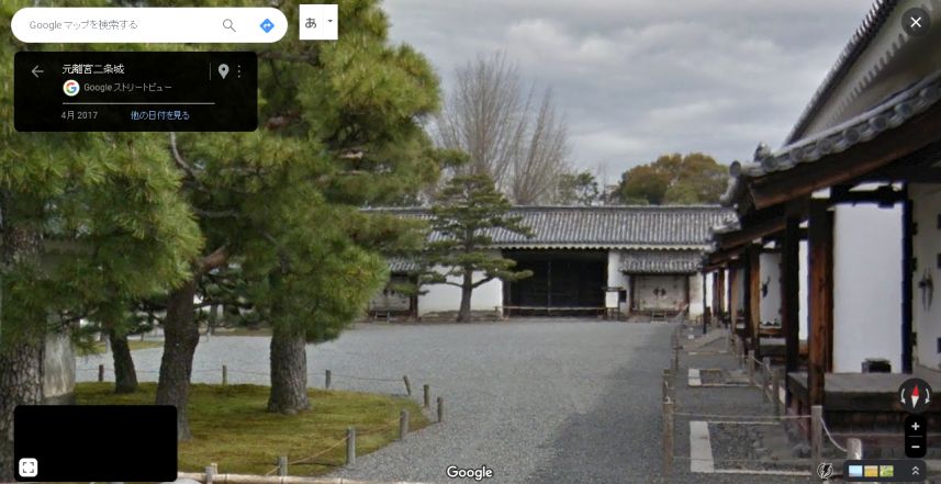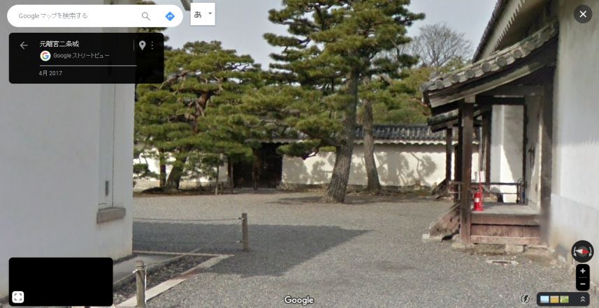 | 二条城二の丸御殿台所東の広場の北。 ↓ |