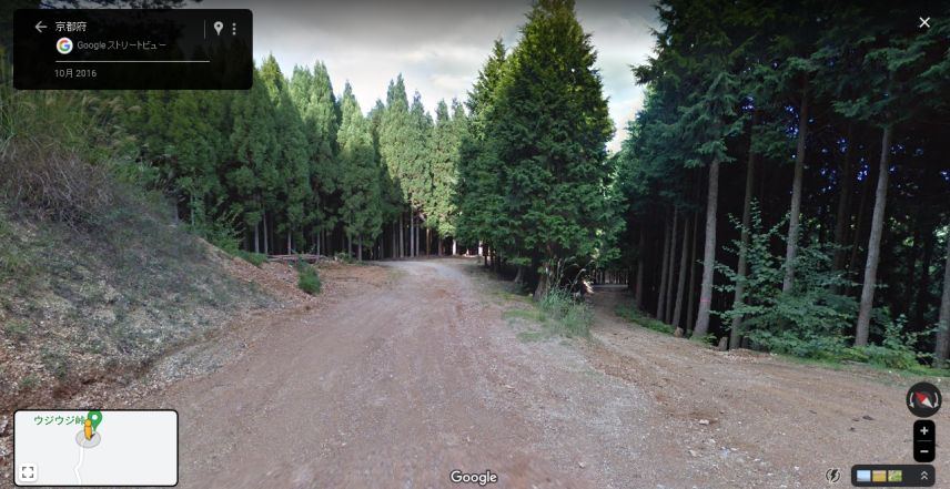 | グーグルのストリートビューの画像。本編画像は右手の枝道からこちらを見ていると思う。 ↓ |