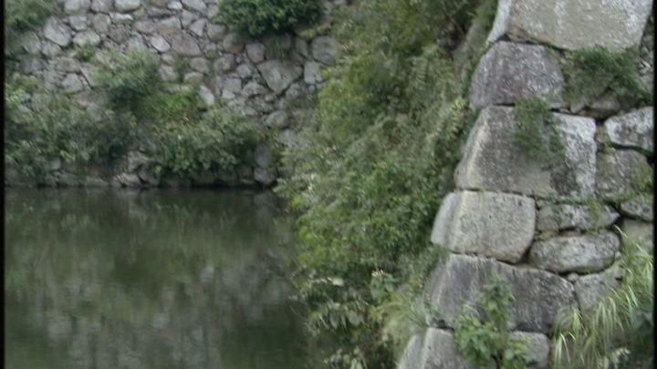 | 姫路城の国土復興之祈願塔あたりの石垣と堀。 ↓ |