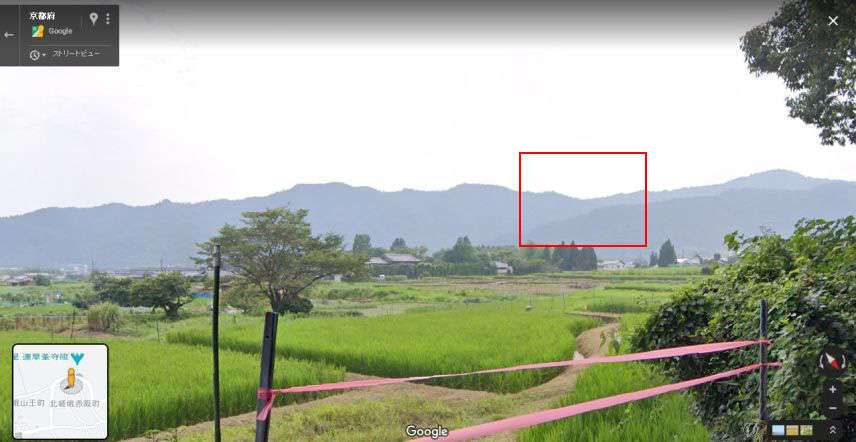 グーグル・ストリートビューの画像。上の絵は赤い枠内が映っていると思われる。
