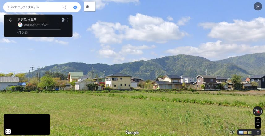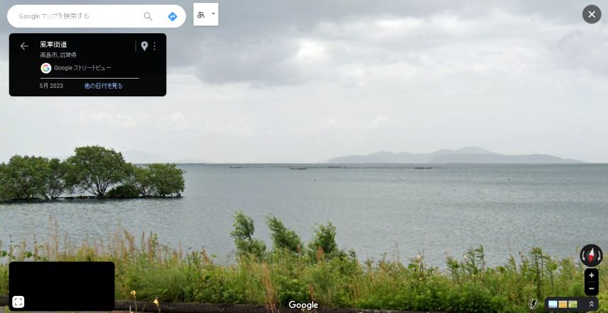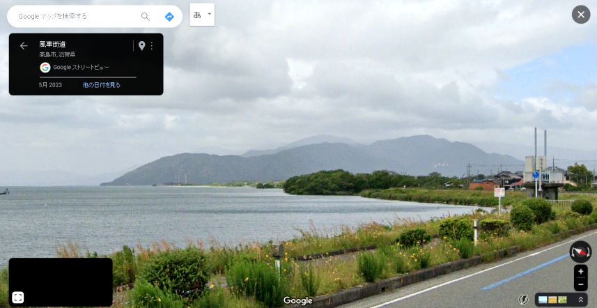 | グーグルのストリートビューの画像。湖岸の見通しが悪かったので、内陸部の画像で代用。 ↓ |