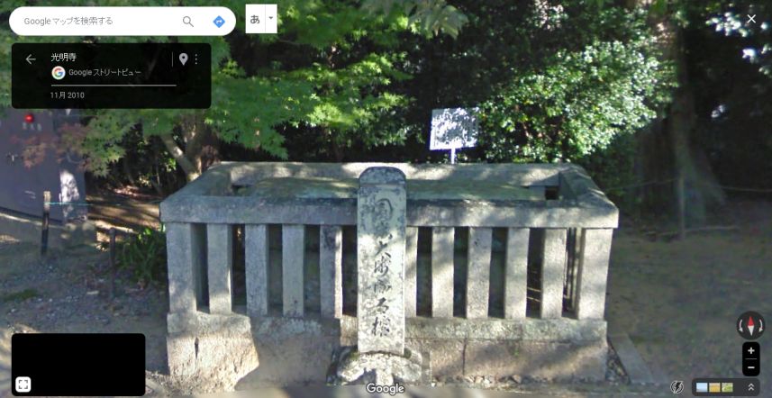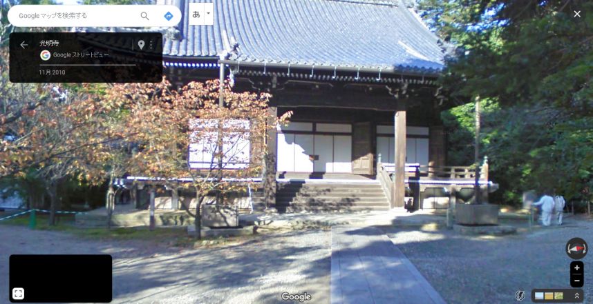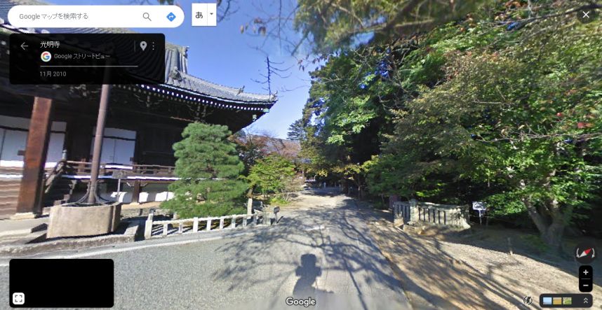 グーグルのストリートビューの画像。御影堂と「圓光大師御石棺」。