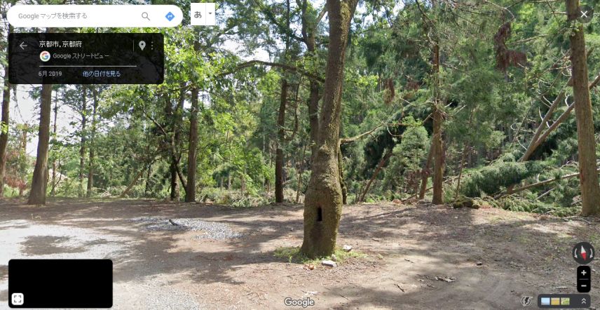 | グーグルのストリートビューの画像。木の洞に注目。 ↓ |
