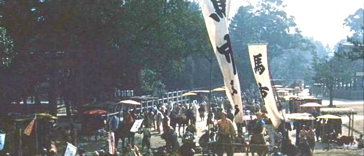 上賀茂神社の二の鳥居前だと思う。見づらいが左手に鳥居があり、奥右手に外幣殿が見える。
