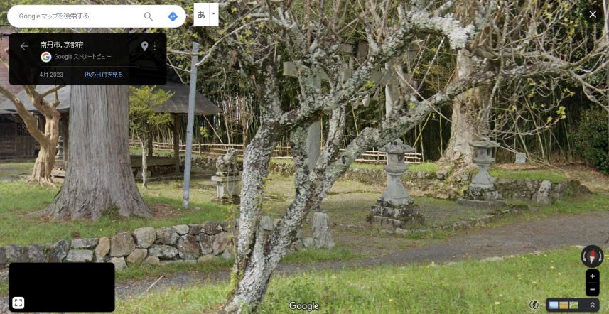 「京都府南丹市園部町宮ノ前」の藪田神社。右手に舞台がちらり。
