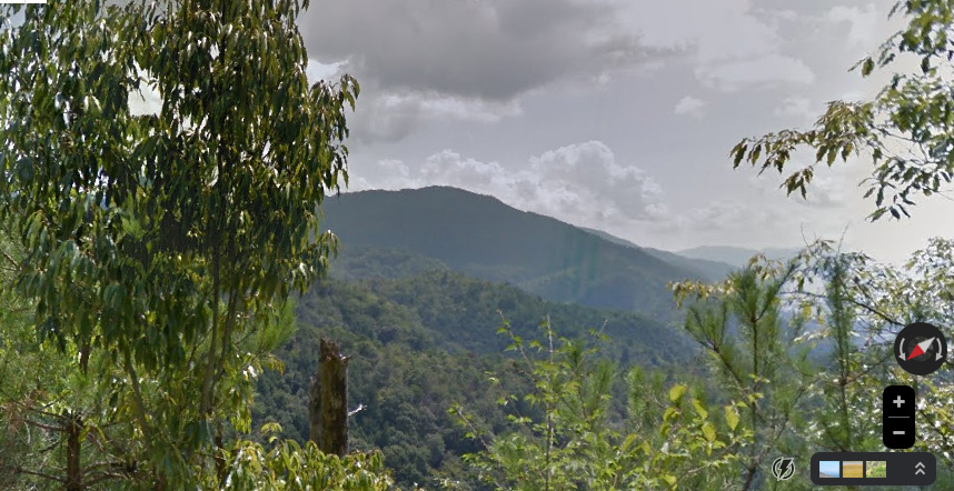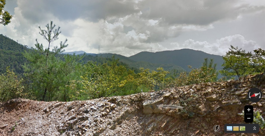 | 展望台のやや北から取得したグーグル・ストリートビューの画像。木立が邪魔をするので2枚。 ↓ |