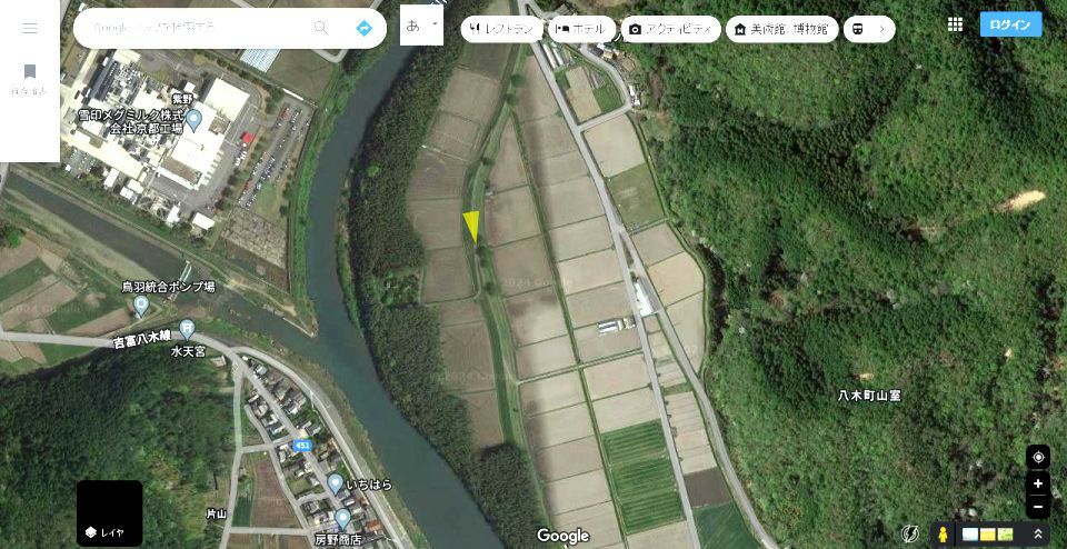 グーグルの空中写真。黄色い矢印方向に撮っていると思われる。