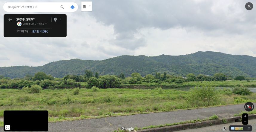 「京都市右京区北嵯峨六代芝町」の「民宿わらびの里」の西沿いの道だと思う。
