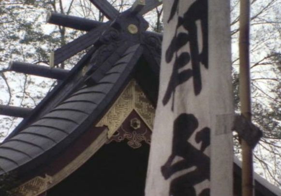 同社本殿裏から巽神社を見る。