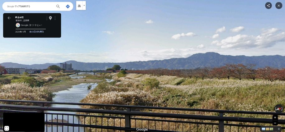 | 滋賀県草津市の草津川から取得したグーグルのストリートビューの画像。 ↓ |