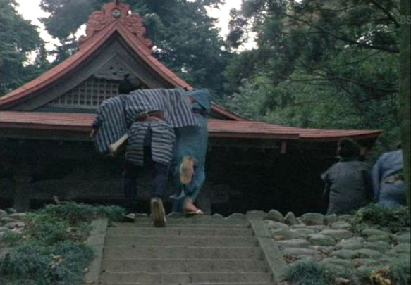 「東京都稲城市大丸」の大麻止乃豆乃天神社。本編に「えんしょうじのうら」というセリフあり。たしかに円照寺に近い。