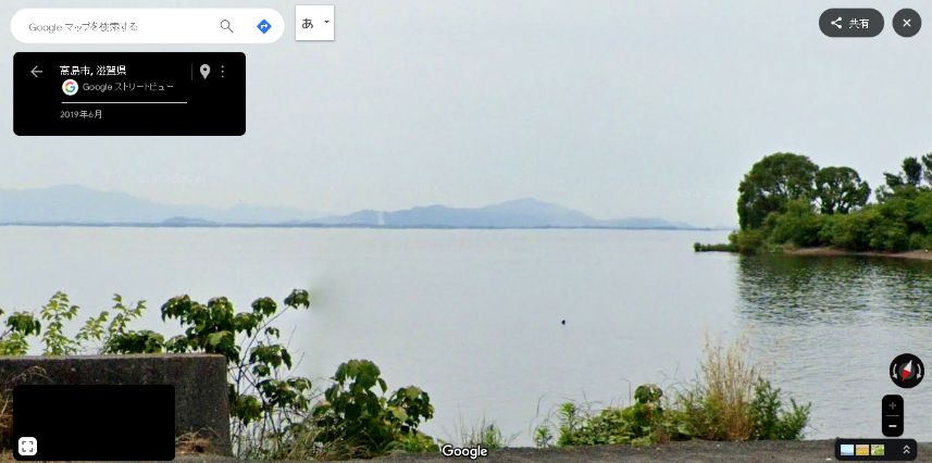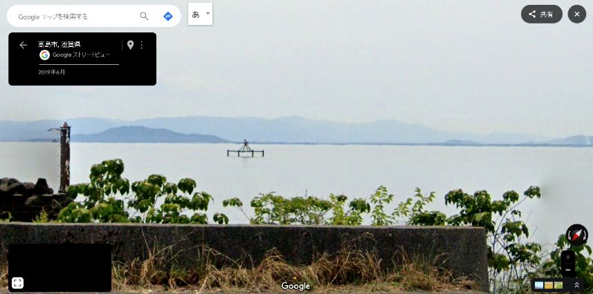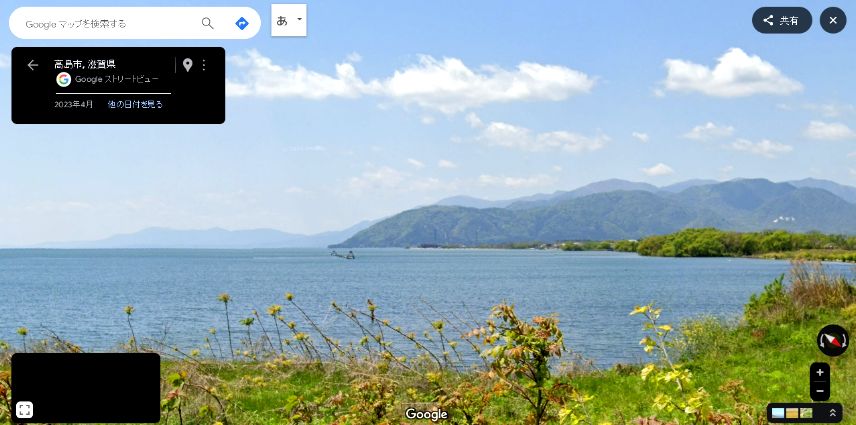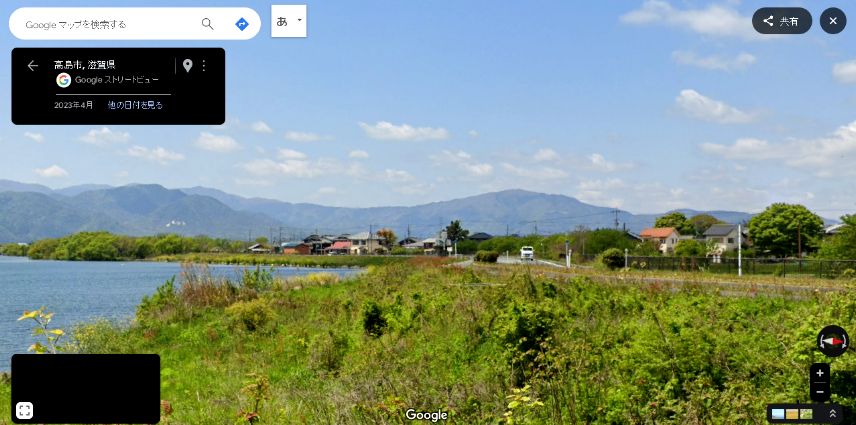 | グーグルのストリートビューの画像。安曇川河口より手前からの画像なのでしっくりしない。 ↓ |