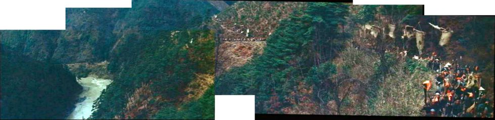 「京都市右京区嵯峨亀山町」の京都府道50号線の六丁峠あたりから保津峡上流を撮っていると思う。