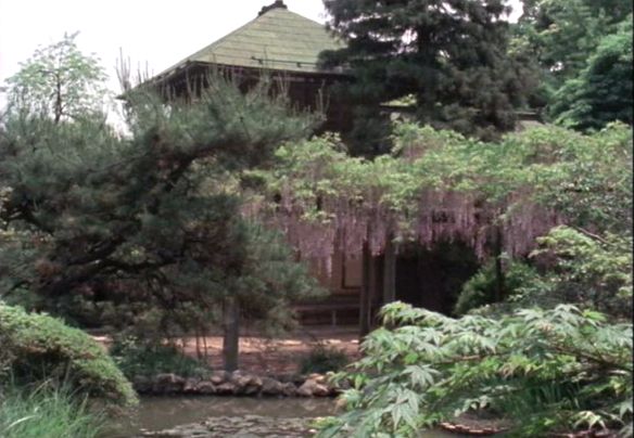 | 「東京都日野市百草」の京王百草園の「心字池」越しに見た「旧三檪庵(さんれきあん)」。藤が満開。なお「三檪庵」については「第68話」参照のこと。 ↓ |