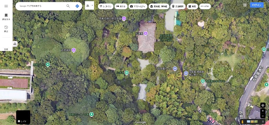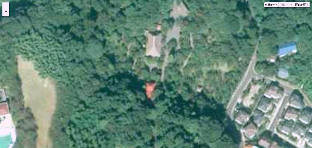 | グーグルの空中写真の画像。現在の「三檪庵」は平屋。 ↓ |