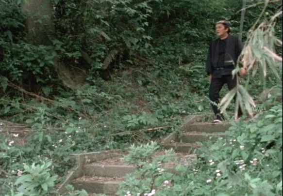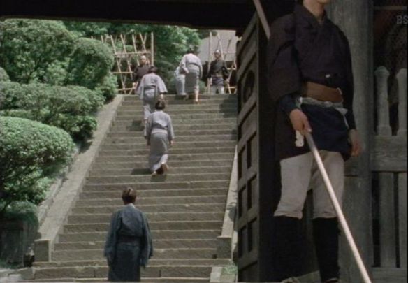 「川崎市多摩区菅仙谷」の寿福寺の観音堂から鐘楼へ上がる石段。