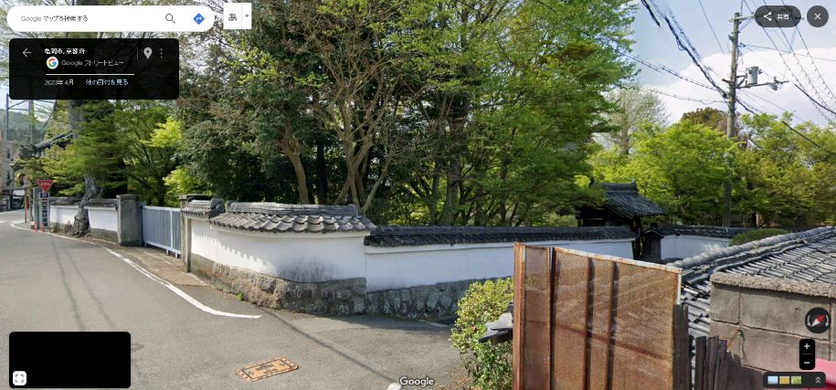 | グーグルのストリートビューの画像。表通りから路地内を見ている。なお左手の民家は「水戸黄門(第2部)」のお宅。 ↓ |