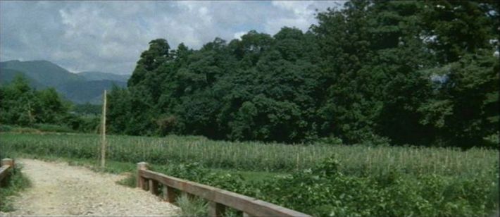 | 国土地理院の「国土変遷アーカイブ」による1975年撮影の川原谷周辺の航空写真。黄色い円内がロケ地。 ↓ |