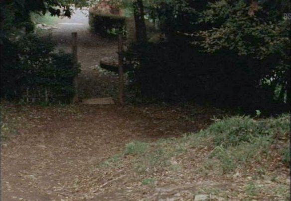百草八幡神社と京王百草園の境の柵。手前が百草八幡神社。