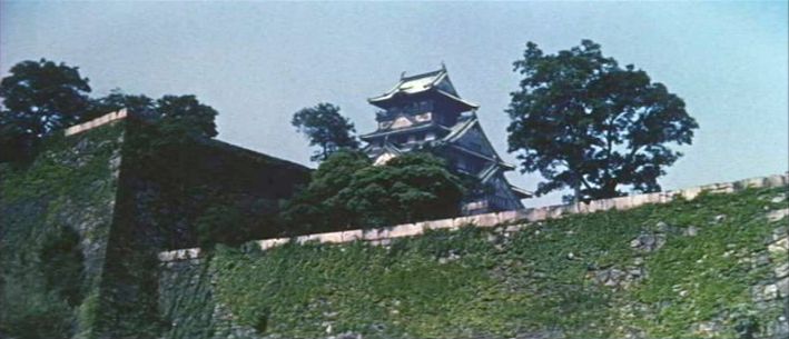 | 大阪城の青屋門あたりの堀端から見た天守。 ↓ |