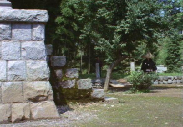 「東京都青梅市根ヶ布1丁目」の天寧寺の中雀門。鐘楼の基壇の石積みが今とは異なる。
