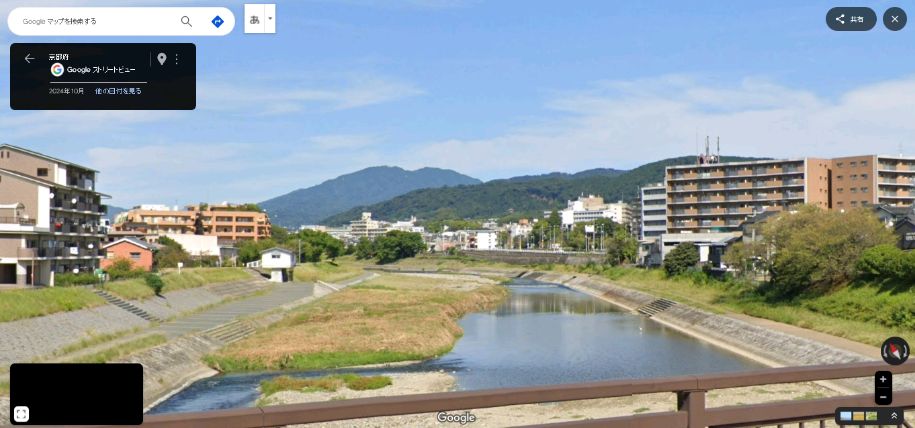 | 「京都市東山区福稲川原町」あたりの鴨川。 ↓ |